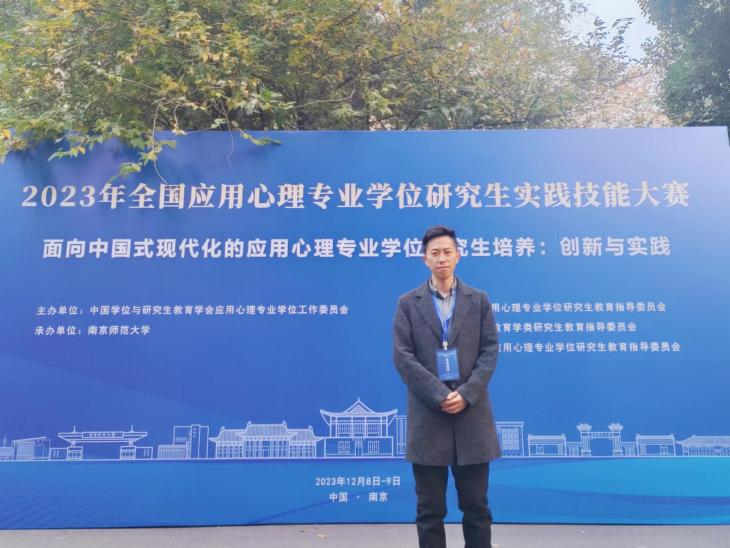 2023年全国应用心理专业学位研究生实践技能大赛于12月8日至9日在南京师范大学成功举办。本次大赛由中国学位与研究生教育学会应用心理专业学位工作委员会主办,全国应用心理专业学位研究生教育指导委员会指导,是全国应用心理专业硕士实践技能的高水平赛事。经过激烈角逐,今年会官网七十三老师指导的应用心理专硕吴贾超同学荣获心理咨询面谈技能比赛二等奖!