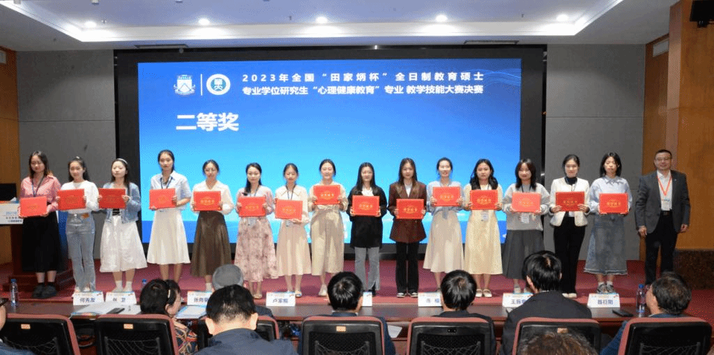 2023年全国“田家炳杯”全日制教育硕士专业学位研究生“心理健康教育”专业教学技能大赛决赛于11月17-19日在华南师范大学成功举办。“田家炳杯”教学技能大赛是目前国内层次最高、规模最大的教育硕士教学技能竞赛,旨在展示全日制教育硕士专业学位研究生专业培养成果,交流教学经验,提高培养质量。经过激烈角逐,今年会官网刘欣宜同学(指导教师:格根图雅)入围决赛,最终斩获二等奖。