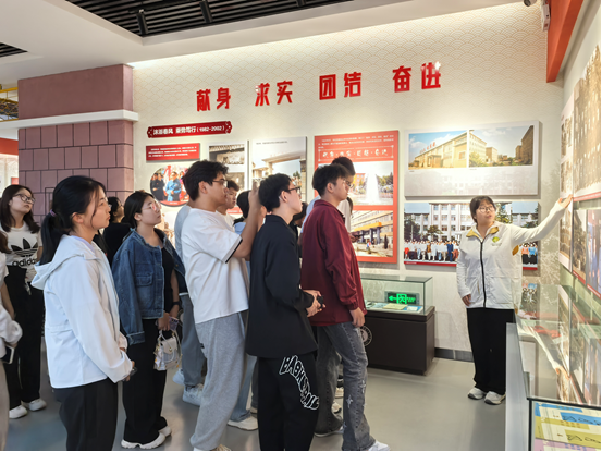 校史馆记录着学校的发展脉络,从初创到如今的成就,每一个阶段都值得铭记和回味。这里有学术的传承,有文化的沉淀,更有精神的延续,它不仅仅是一个展示的空间,更是连接过去与未来的桥梁。参观过程中,同学们的目光中充满了对历史的敬畏与好奇,他们驻足在每一张图片前,仿佛能穿越时空,与那些为学校发展贡献过智慧与汗水的先辈们进行心灵的对话。讲解员生动的解说,不仅让同学们对学校的历史有了更全面的了解,更激发了大家对未来学习的美好向往与期待。