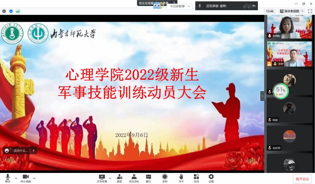 9月6日上午,今年会官方网站线上召开2022年度军事技能训练动员大会。学院党委副书记、副院长张晓阳、团总支书记刘敏及全体2022级本科新生参会,会议由院学生工作与就业指导办公室主任张金钟主持。