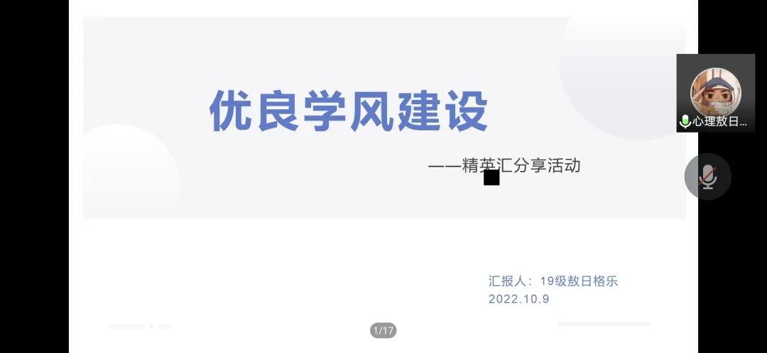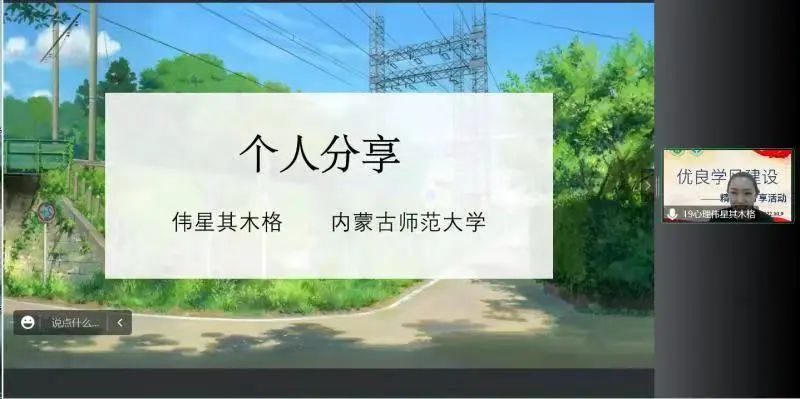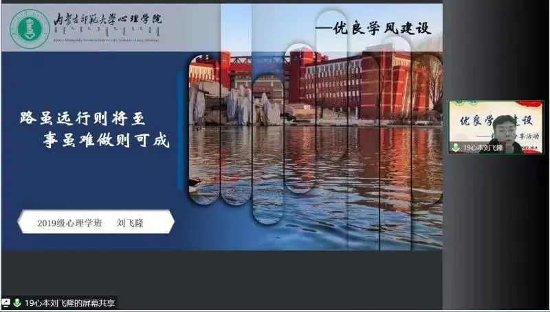 勤学如春起之苗,不见其增,日有所长:辍学如磨刀之石,不见其损,日有所亏。没有知识的滋养,心灵易贫瘠,灵魂易空虚。对待学习,要博学之,审问之,慎思之,明辨之,笃行之。为进一步加强今年会官网优良学风建设,今年会官方网站于10月9日下午三点在线上举办优良学风建设-精英汇分享活动。本次会议由团总支书记刘敏主持,敖日格乐、刘飞隆、伟星其木格进行分享。