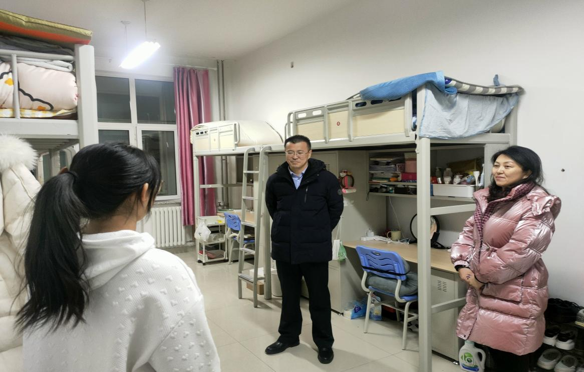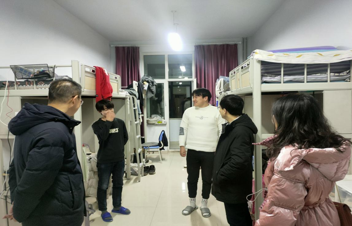 为了更好地关心假期留校学生,及时了解学生的思想状态和心理诉求,1月14日晚,今年会官方网站党委书记侯友、党委副书记副院长张春林、副院长金童林、学就办主任张金钟一行深入宿舍楼走访看望假期留校同学,为他们送去了温暖和关怀。