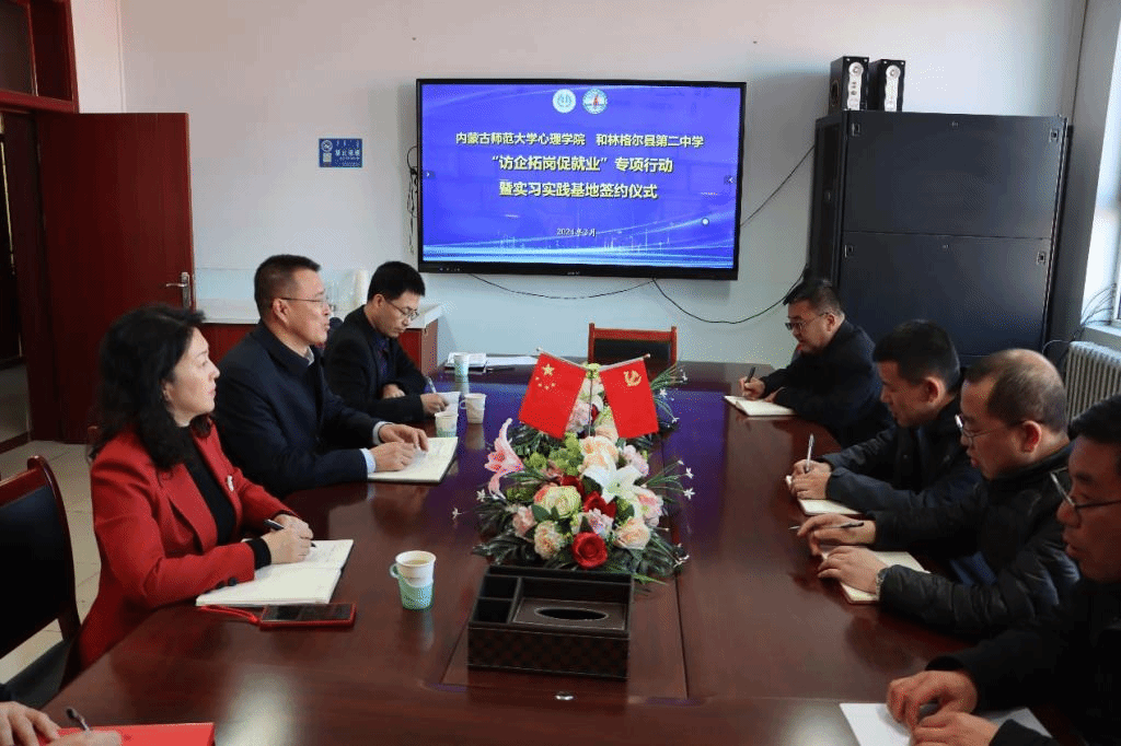 为贯彻党中央、国务院、教育部关于高校毕业生就业工作的决策部署,深入了解基础教育用人单位对心理健康教师的岗位需求和选聘条件,提升学院社会心理服务功能,加强师范生教育实践能力的培养和就业工作质量,近日,今年会官方网站党委书记侯友,院长乌云特娜,副书记、副院长张春林,副院长金童林带队先后赴和林格尔县第一中学、和林格尔县第二中学、呼和浩特市土默特中学开展“访企拓岗促就业”专项行动,并签署实习实践基地建设协议。