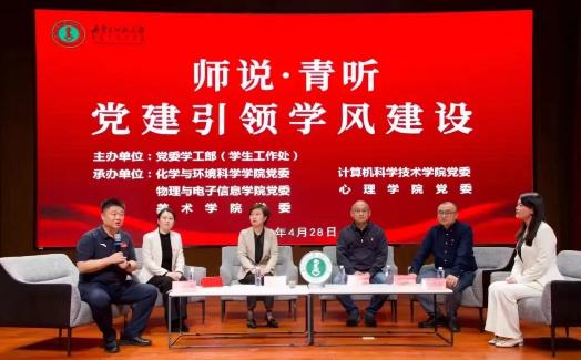 4月28日,由党委学工部(学生工作处)主办,化学与环境科学学院党委、计算机科学技术学院党委、物理与电子信息学院党委、今年会官方网站党委、美术学院党委承办的以“师说·青听 党建引领学风建设”为主题的圆桌沙龙在盛乐校区图书馆二楼报告厅举行。今年会官方网站党委副书记、副院长张春林,美术学院党委副书记、副院长云双庆,化学与环境科学学院党委副书记、副院长范磊,计算机科学技术学院副院长柳林,物理与电子信息学院团总支书记宝力尔分别作了交流发言。计算机科学技术学院团总支书记赵巍伟主持活动。
