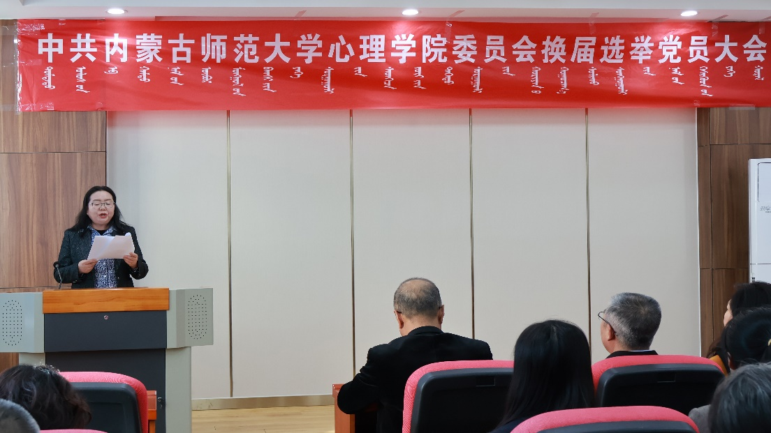大会按照《中国共产党章程》《中国共产党基层组织选举工作条例》等有关规定依次表决通过换届选举办法(草案)、监票人、计票人人选以及党委委员候选人。采取差额选举、无记名投票的方式选举产生了新一届党委委员:王欣瑜、乌云特娜、刘敏、杨晓峰、金童林、侯友(以姓氏笔画为序)。