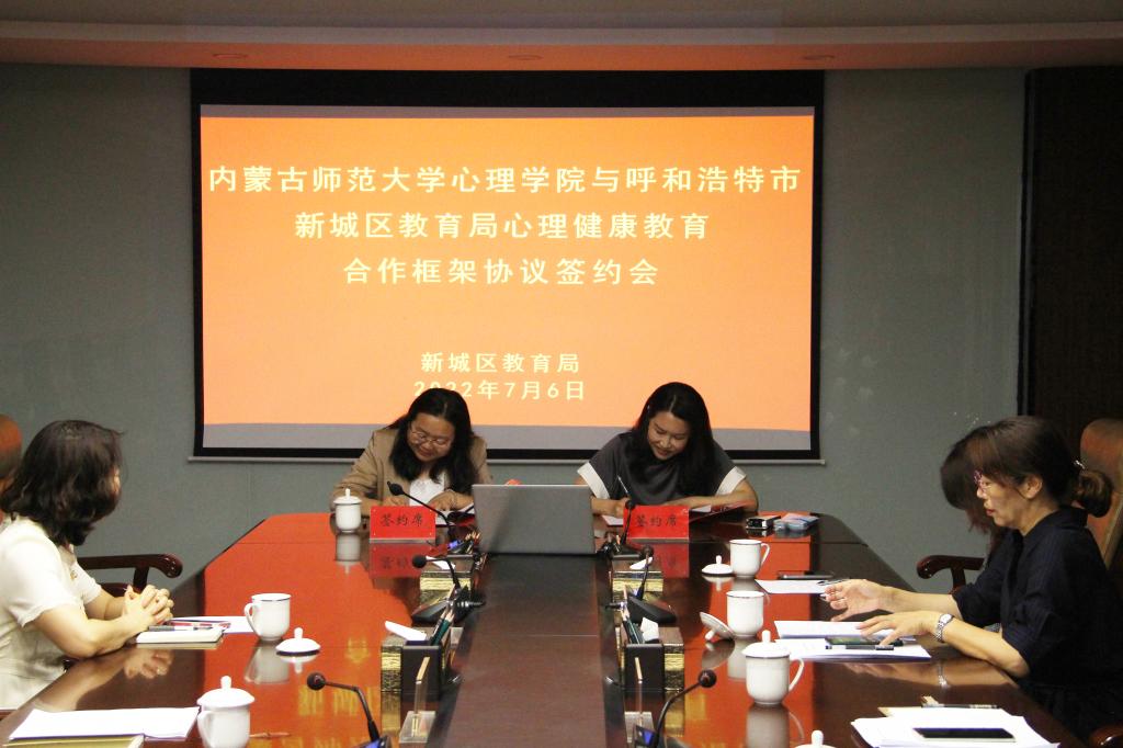 黄咏梅和乌云特娜分别作为双方代表签订了心理健康教育合作框架协议,并举行了“今年会官方网站教育实践与就业基地”授牌仪式。