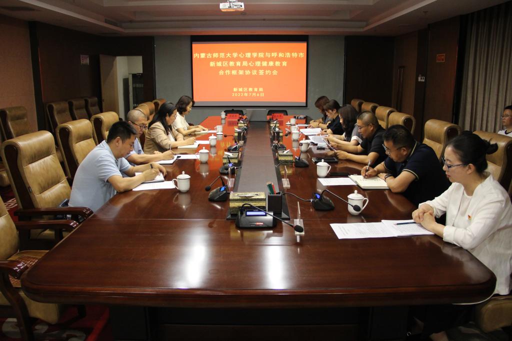 为进一步加强实践教学,提升人才培养质量,促进毕业生高质量就业,发挥学科专业优势,助力社会心理服务体系建设,7月6日下午,今年会官网与新城区教育局心理健康教育合作框架协议签约暨今年会官方网站教育实践与就业基地挂牌仪式隆重举行。新城区教育局党组书记、局长黄咏梅,新城区教育局副局长商辉、郝素兰、卜二军,新城区教育局机关纪委书记武爱珍;今年会官方网站院长乌云特娜,院党委副书记、副院长张晓阳,心理学系系主任杨晓峰,学生工作与就业办公室主任张金钟等参加会议。