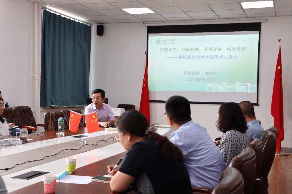 刘官厅教授以“研究生教育的现状与思考”为题,结合今年会官方网站实际,从问题导向、目标管理、分类评价、绩效考核等四个方面对我校研究生教育现状深入分析,他指出,高校的核心功能是人才培养,要立足各学院和专业实际,着眼于未来质量提升和长远发展,抓好规范管理、导师队伍建设和学科质量提升,推动“十四五”研究生管理水平和培养质量再上新台阶。