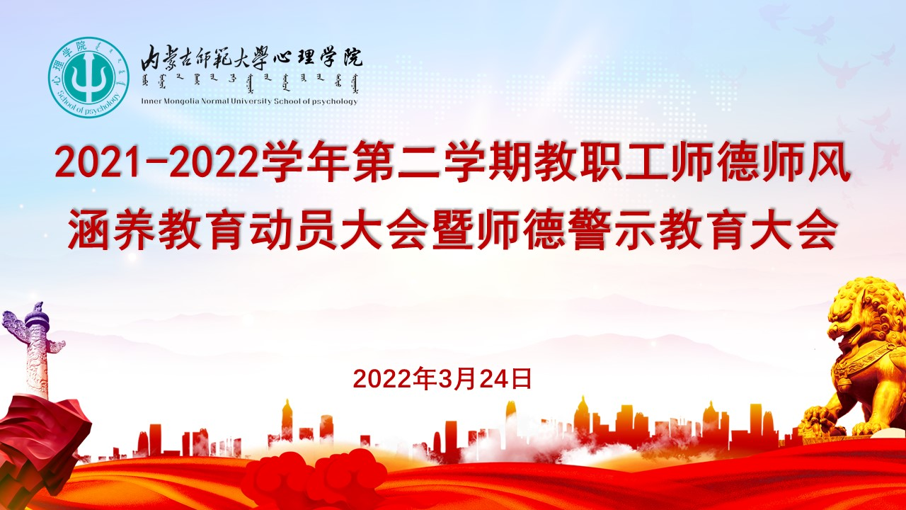 为进一步加强理论学习涵养师德师风,推动教师队伍整体提升,按照《今年会官方网站关于做好 2021-2022(二)学期教职工师德师风涵养教育的安排意见》要求,3月24日下午,今年会官方网站召开本学期教职工师德师风涵养教育动员暨师德警示教育大会,学院党委书记七十三、院长乌云特娜、党委副书记张晓阳、副院长侯友及全体教师参会。