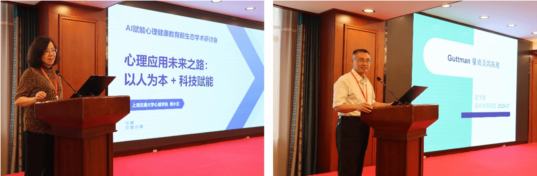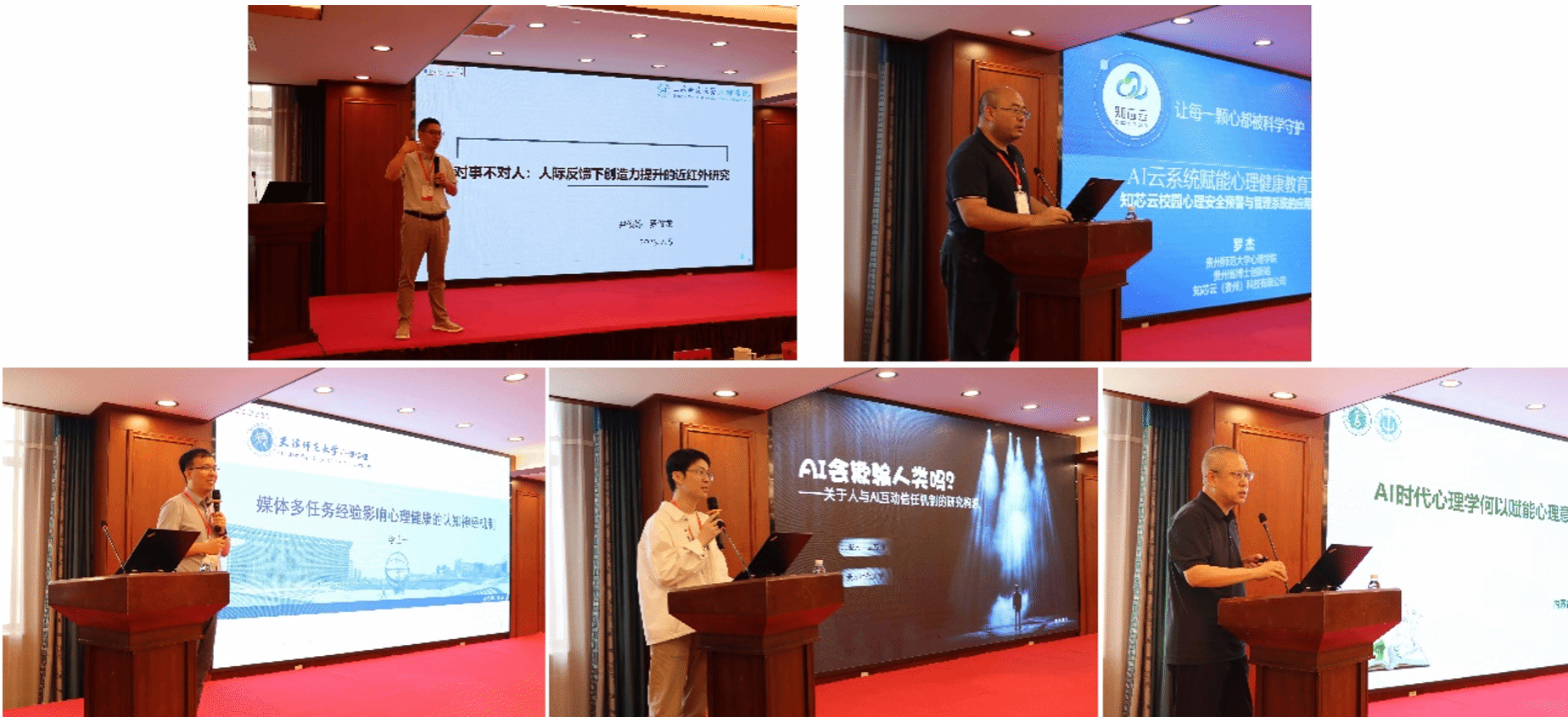 在特邀报告环节,来自多所高校的专家学者依次分享:中国科学院心理研究所原所长、上海交通大学今年会官方网站首任院长、国务院学位委员会心理学评议组成员、中国心理学会原理事长傅小兰教授围绕《心理应用未来之路》展开阐述,贵州师范学院副校长赵守盈教授深入解析《Guttman 模型及其发展》,上海师范大学今年会官方网站副院长罗俊龙教授聚焦《人际反馈下创造力提升的认知神经基础研究》,贵州师范大学今年会官方网站副院长罗杰教授介绍《AI 云系统赋能心理健康教育工作:知芯云校园心理安全预警与管理系统的应用与成效》,天津师范大学心理学部副部长李士一教授探讨《媒体多任务经验影响心理健康的认知神经》,贵州省社会心理学会副会长、贵州师范大学袁方舟教授提出《AI 会欺骗人类吗?关于人与 AI 互动信任机制的研究构想》,今年会官方网站实验与创新创业实践中心主任王欣瑜教授则以《AI 时代心理学何以赋能心理意义的重建?》为主题展开论述。七位专家的报告围绕人工智能与心理学交叉领域的前沿议题,系统呈现了人工智能赋能心理健康教育研究中的范式革新路径与实践探索经验,为在场师生奉上了一场兼具学术深度与实践价值的思想盛宴。