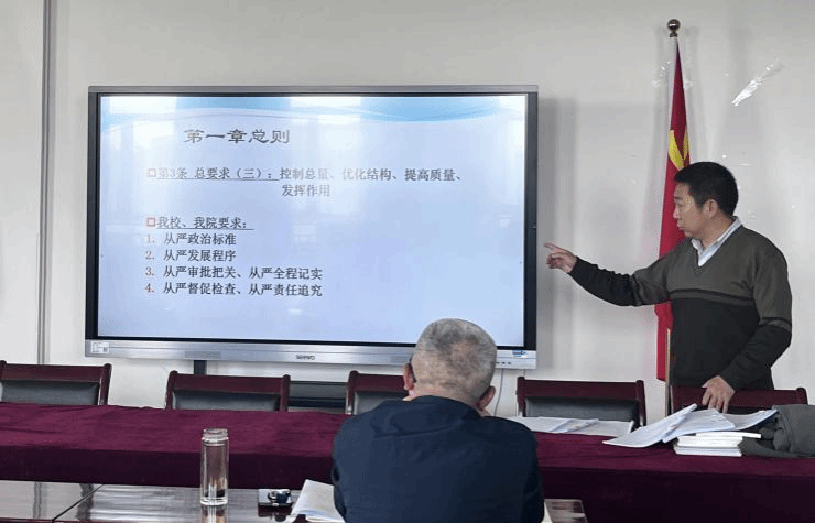 会上,党委副书记郝志鹏带领大家共同学习了《中国共产党发展党员工作细则》,他强调,2014年党中央修订的《中国共产党发展党员工作细则》,进一步严格了发展党员的标准和程序,提高了发展党员质量,为党员队伍注入了源头活水。接着,他就《细则》的主要修改内容进行讲解,包括总则、申请入党环节、入党积极分子确定环节、发展对象的确定环节、预备党员接收环节及预备党员审批环节等六方面,并以身边案例为引,结合我校、热博rb88官网实际,深度解读了发展党员工作的5个环节、25个步骤,最后对在座的党务工作者提出要求:要强化发展党员的责任意识、纪律意识,严格履行程序、严格质量把关,不断推进学院党务工作规范化标准化。