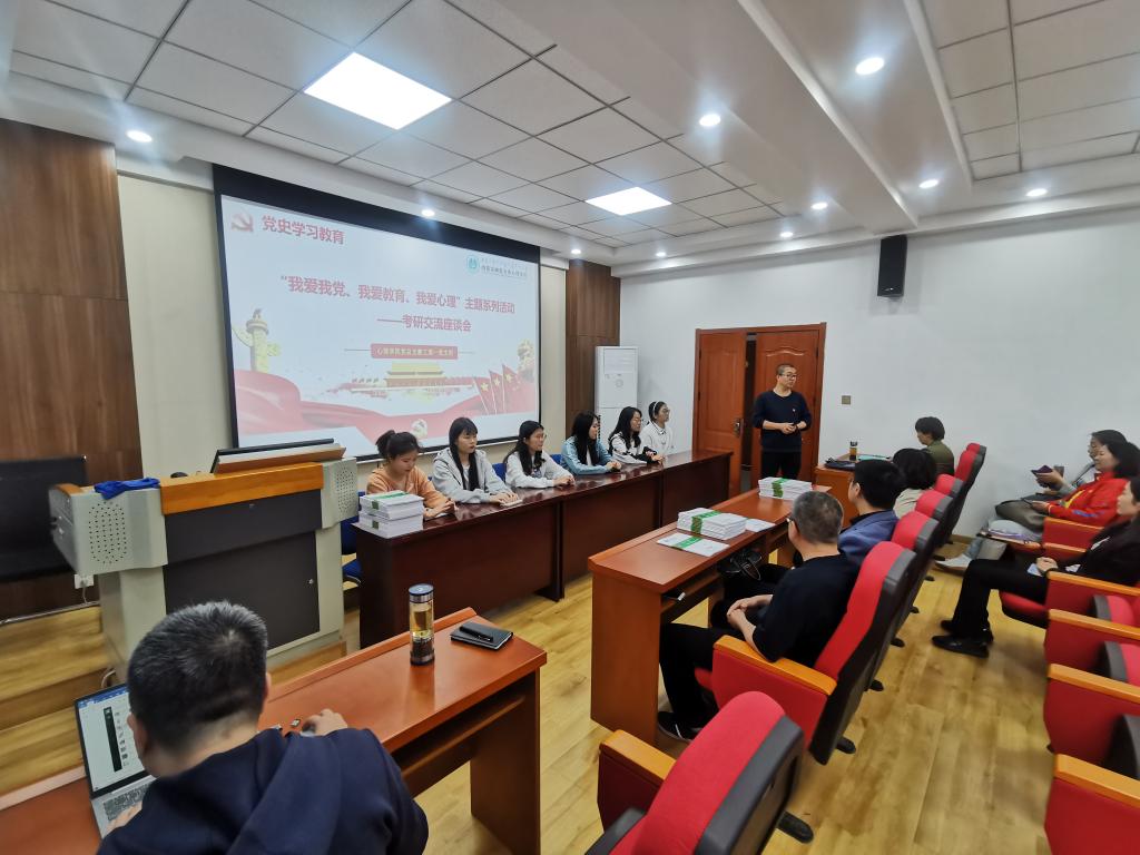 为深入开展党史学习教育,扎实开展“我为师生办实事”实践活动,着力解决学生“急难愁盼”问题,将党史学习教育与学生培养与就业升学深度结合,今年会官方网站党总支教工第一党支部于4月21日下午在206会议室举行了“我爱我党,我爱教育,我爱心理”主题系列活动——考研交流座谈会暨2018级本科生教育实习动员大会。座谈会由教工第一党支部书记杨晓峰主持,学院党总支副书记张晓阳、教工第一支部成员、17级考研成功的学生代表以及18级全体本科生参加了此次座谈。